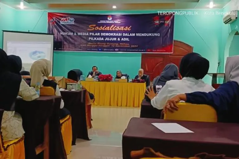 TEROPONGPUBLIK.CO.ID - Komisi Pemilihan Umum (KPU) Kabupaten Bengkulu Tengah menggelar sosialisasi Pilkada bersama Media Independent Online (MIO) Indonesia Provinsi Bengkulu di Resto Riung Gunung, Nakau, Kabupaten Bengkulu Tengah, pada Minggu, 10 November 2024. Sosialisasi ini mengusung tema "Hukum dan Media sebagai Pilar Demokrasi dalam Mendukung Pilkada Jujur dan Adil."
