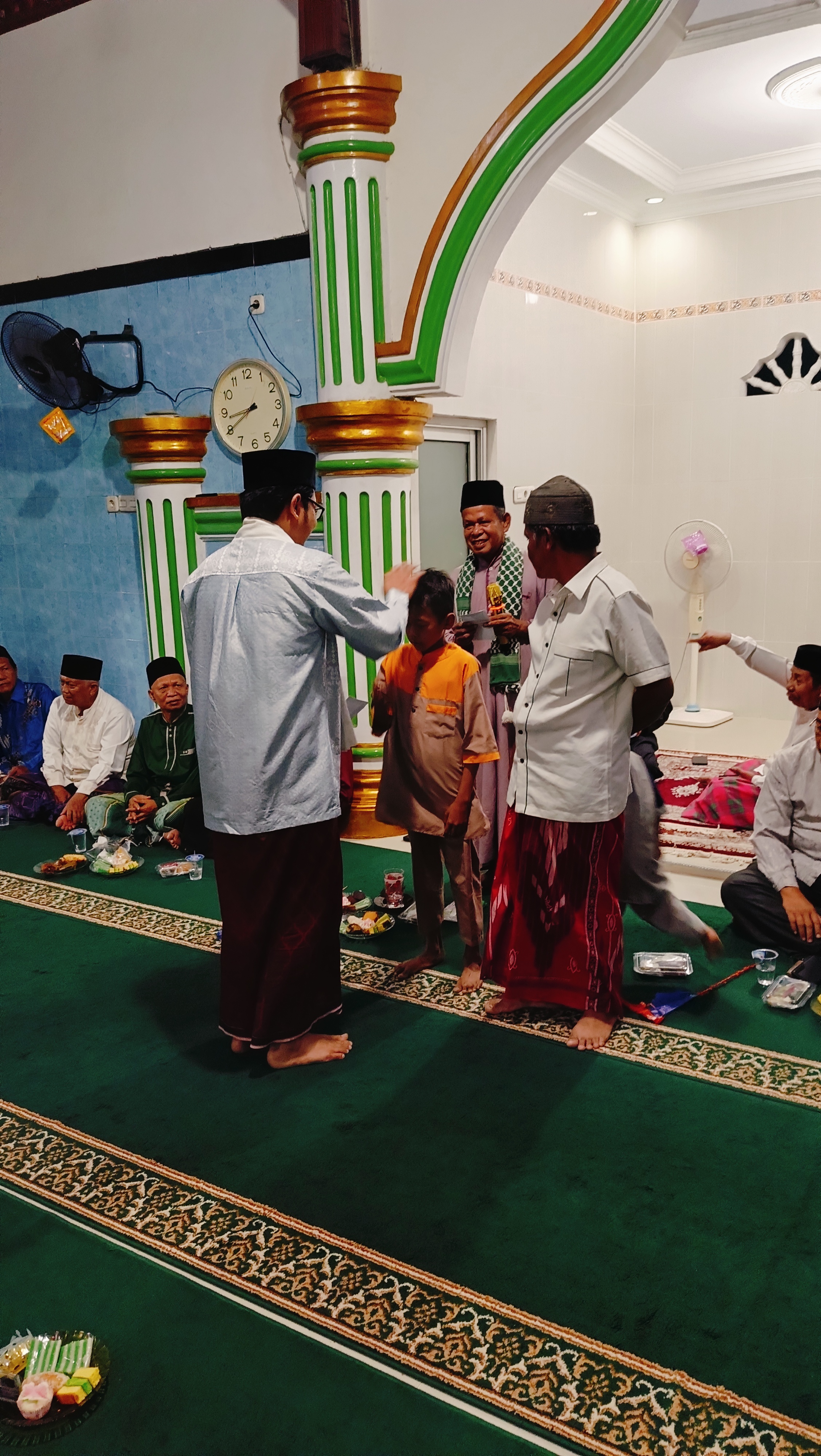 Usai memberikan kata sambutan, kemudian pengurus masjid Awaludin memberikan beberapa santunan kepada anak yatim yang ada di RT 08 Kelurahan Sukamerindu.