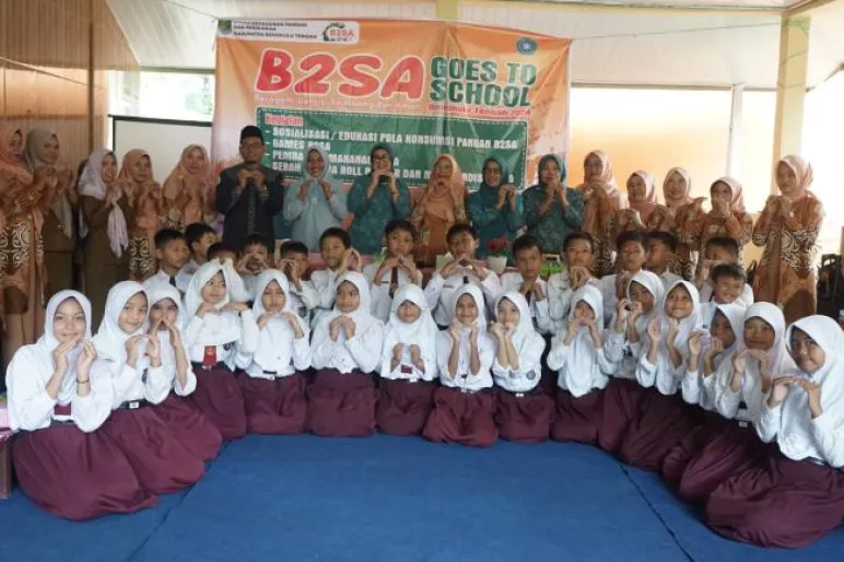 TEROPONGPUBLIK.CO.ID <<<>>>> Pemerintah Kabupaten Bengkulu Tengah melalui Dinas Ketahanan Pangan dan Perikanan (DKPP) bekerja sama dengan Tim Penggerak Pemberdayaan dan Kesejahteraan Keluarga (TP PKK) mengadakan sosialisasi pola makan Beragam, Bergizi, Seimbang, dan Aman (B2SA) dalam program "B2SA Goes to School". Kegiatan ini menyasar siswa Sekolah Dasar (SD) untuk membentuk pola konsumsi sehat sejak dini.