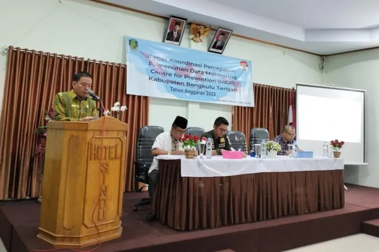 BENGKULU TENGAH.TEROPONGPUBLIK.CO.ID-Penjabat Bupati Bengkulu Tengah Dr. Heriyandi Roni, M.Si., melalui Asisten Bidang Administrasi Umum H. Elyandes Kori, M.Si., membuka kegiatan Rapat Koordinasi Percepatan Pemenuhan Data Monitoring Centre For Prevention (MCP) Kabupaten Bengkulu Tengah tahun anggaran 2022 di Aula Balai Sindu Kecamatan Talang Empat. Jum'at (16/12/2022).
