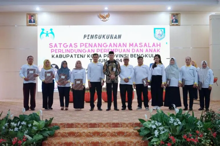 TEROPONGPUBLIK.CO.ID - Pemerintah Provinsi (Pemprov) Bengkulu mengukuhkan Satuan Tugas Penanganan Masalah Perempuan dan Anak (Satgas PPA) di sembilan kabupaten/kota sebagai langkah konkret dalam mencegah kekerasan terhadap perempuan dan anak. Satgas ini diharapkan menjadi garda terdepan dalam melindungi kelompok rentan tersebut dari segala bentuk kekerasan dan diskriminasi.