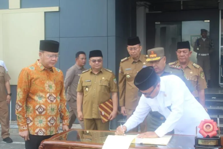 TEROPONGPUBLIK.CO.ID-Gubernur Bengkulu Rohidin Mersyah menyaksikan penandatanganan secara simbolis perjanjian kerjasama (PKS) antara Perum Bulog Bengkulu, Sekretariat Daerah, dan OPD Lingkungan Pemprov Bengkulu.Pemprov.Selasa, 10 Oktober 2023, di halaman apel kantor Gubernur Bengkulu,