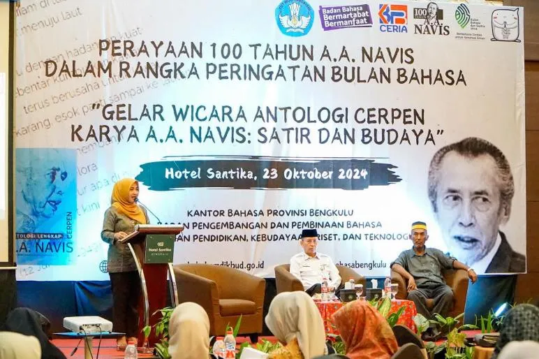 Sekretaris Daerah (Sekda) Provinsi Bengkulu, Isnan Fajri, secara resmi membuka Gelar Wicara Antologi Cerpen Karya A.A. Navis pada Rabu (23/10) di Ballroom Hotel Santika, Bengkulu. Dalam sambutannya, Isnan menyebutkan bahwa kegiatan ini menjadi momentum penting untuk mendalami nilai-nilai satir dan budaya yang terkandung dalam karya-karya Navis.