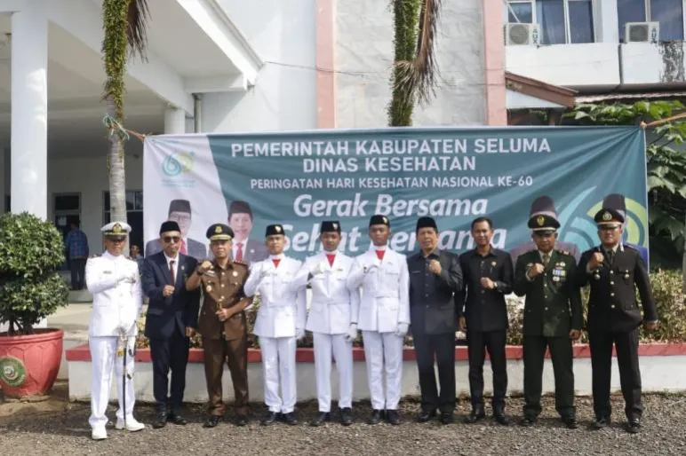 TEROPONGPUBLIK.CO.ID <<<>>> Sekretaris Daerah Kabupaten Seluma, H. Hadianto, SE, MM, M.Si, memimpin Upacara Peringatan Hari Pahlawan ke-79 dan Hari Kesehatan Nasional ke-60 pada Minggu (10/11/2024). Upacara tersebut berlangsung di Halaman Kantor Bupati Seluma dan dihadiri oleh berbagai elemen pemerintah dan masyarakat, termasuk Forum Koordinasi Pimpinan Daerah (Forkopimda), pejabat eselon, staf pemerintah, anggota TNI/Polri, organisasi masyarakat, serta Pramuka.