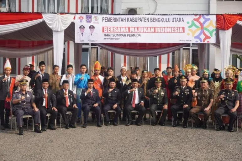 TEROPONGPUBLIK.CO.ID >>><< Pemerintah Kabupaten Bengkulu Utara (BU) bersama Bupati BU, Ir. H. Mian, dan Wakil Bupati BU, Arie Septia Adinata, S.E, M.Ap, serta jajaran Forkopimda dan berbagai organisasi di lingkungan pemerintahan kabupaten tersebut, merayakan Hari Sumpah Pemuda yang ke-95 dengan upacara yang digelar di halaman Kantor Bupati BU pada Selasa (31/10/2023).