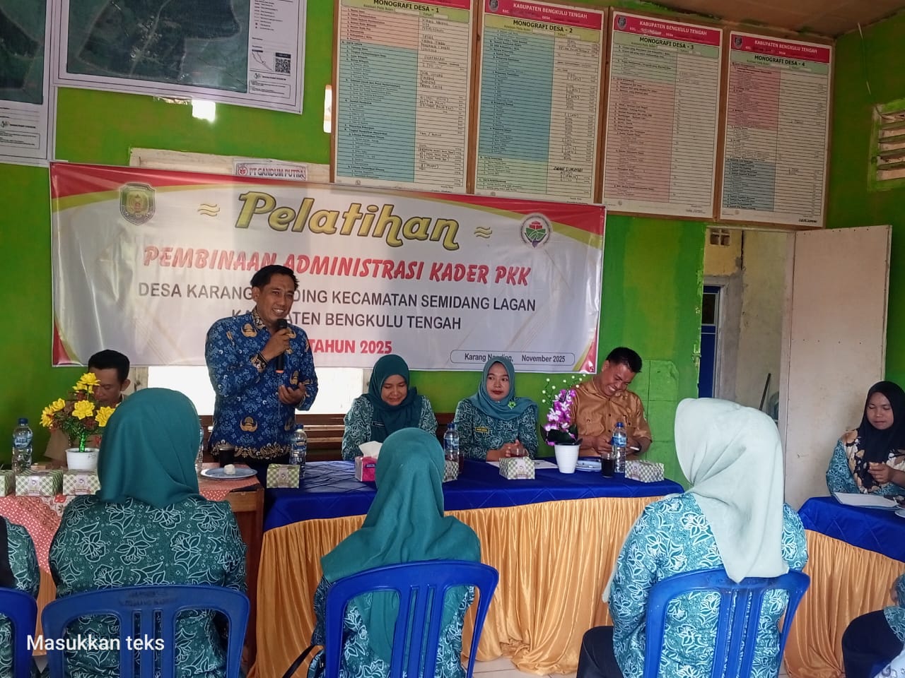 TEROPONGPUBLIK.CO.ID <<<>>>>Desa Karang Nanding, Kecamatan Semidang Lagan, Kabupaten Bengkulu Tengah, menggelar kegiatan Pelatihan Pembinaan Administrasi Kader PKK sebagai upaya meningkatkan kapasitas kader dalam pengelolaan administrasi dan program pemberdayaan masyarakat. Kegiatan yang berlangsung di Balai Desa Karang Nanding ini diikuti oleh seluruh kader dan pengurus PKK Desa, dengan antusiasme tinggi dari para ibu-ibu yang ingin memperkuat peran mereka dalam pembangunan desa.Senin(17/11/2025)