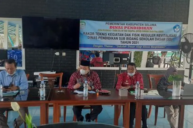 SELUMA.TEROPONGPUBLIK.COM>><< Wakil Bupati Seluma Drs. Gustianto hadiri acara pembukaan Rapat Koordinasi Teknis Kegiatan Dana Alokasi Khusus (DAK) Fisik Reguler Revitalisasi Dinas Pendidikan Sub Bidang Sekolah Dasar (SD) Tahun 2021.