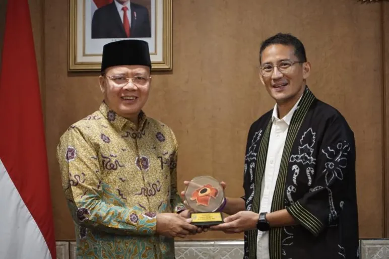 TEROPONGPUBLIK.CO.ID >><< Gubernur Rohidin Mersyah dari Provinsi Bengkulu mengadakan pertemuan dengan Menparekraf RI Sandiaga Uno di Kementerian Pariwisata dan Ekonomi Kreatif pada Kamis (14/3) siang. Pertemuan tersebut berfokus pada diskusi mengenai rencana pembuatan film biografi tentang Ibu Negara Pertama RI, Fatmawati Soekarno, yang juga merupakan putri kebanggaan Bengkulu.