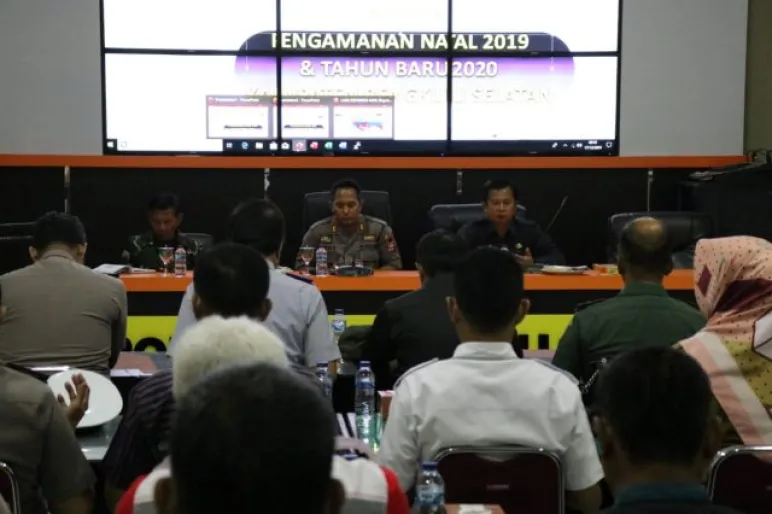 BENGKULUSELATAN.TEROPONGPUBLIK.COM>><<< Demi menjaga keamanan di Kabupaten Bengkulu Selatan menyongsong Perayaan Natal 2019 dan Tahun Baru 2020, Kapolres Bengkulu Selatan AKBP Deddy Nata SIK mengadakan Rapat Koordinasi (rakor) lintas sektoral yang bertempat di Aula Command Center Polres Bengkulu Selatan, Selasa (17/12/2019).