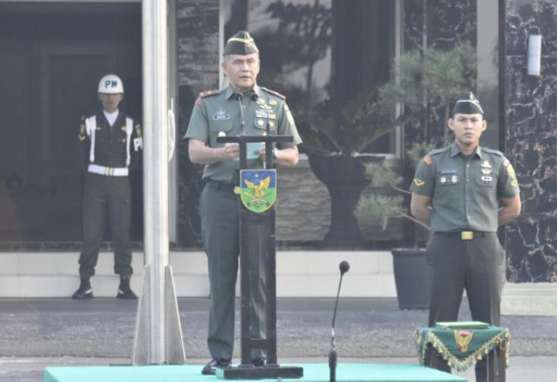 TEROPONGPUBLIK.CO.ID - Korem 041/Gamas melaksanakan upacara pengibaran bendera bulanan dengan khidmat di halaman Mako