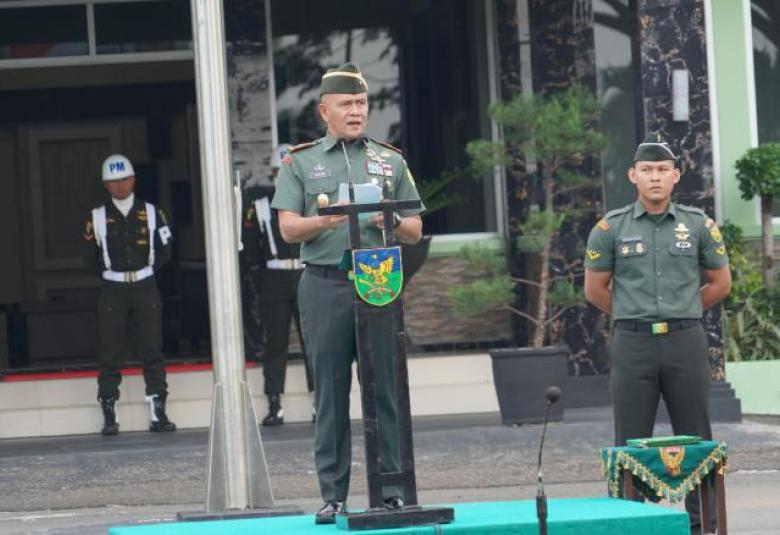 TEROPONGPUBLIK.CO.ID -Brigjen TNI Rachmad Zulkarnaen, Danrem 041/Gamas, bertindak sebagai Inspektur Upacara dalam pel