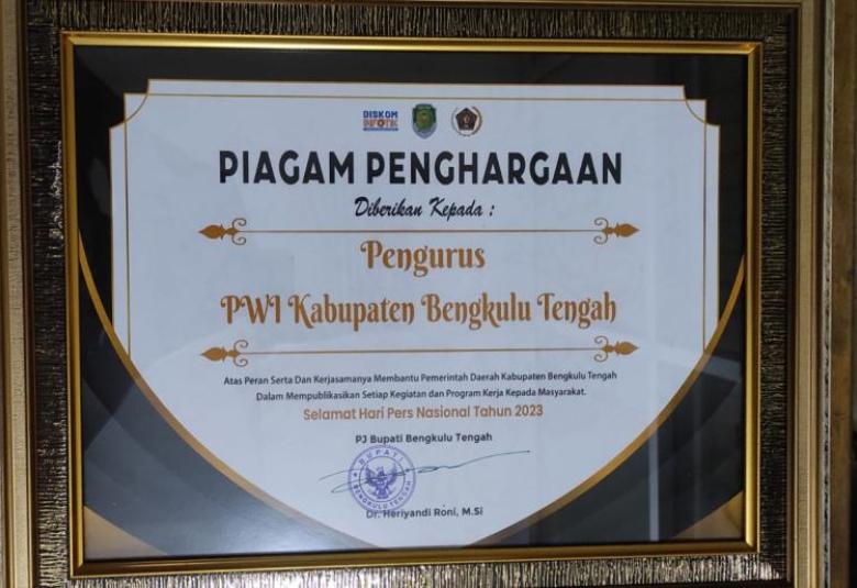 PJ Bupati Bengkulu Tengah Berikan Penghargaan Kepada PWI Benteng