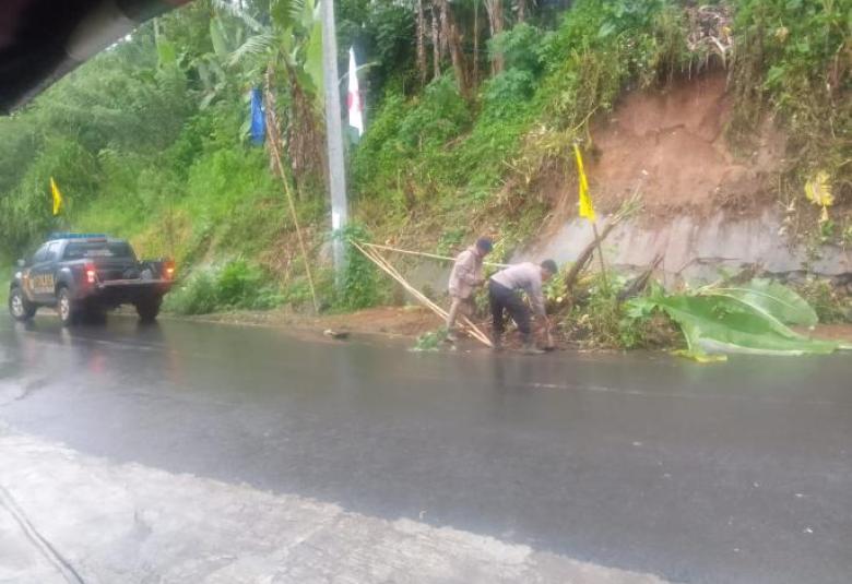 Polsek Rimbo Pengadang Bersihkan Material Tanah Longsor di Jalan Raya Muara Aman - Curup
