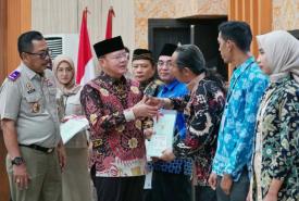 Gubernur Rohidin Mersyah Serahkan 200 Sertipikat Tanah Kegiatan PTSL Tahun Anggaran 2023 di Bengkulu