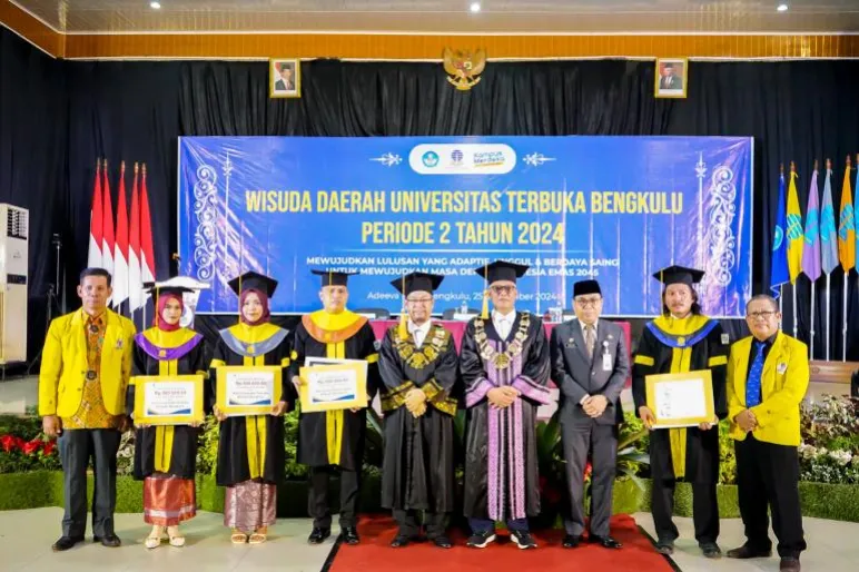 TEROPONGPUBLIK.CO.ID <<<>>>> Universitas Terbuka (UT) Bengkulu kembali menegaskan komitmennya dalam menyediakan pendidikan tinggi yang dapat diakses oleh semua kalangan melalui sistem pembelajaran jarak jauh. Pada Rabu, 25 September 2024, UT Bengkulu mengadakan Wisuda Daerah Periode 2 Tahun 2024 di Hotel Adeeva, Bengkulu.