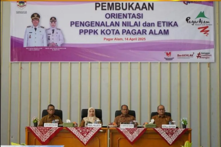 TEROPONGPUBLIK.CO.ID <<<>>> Pemerintah Kota Pagar Alam menggelar kegiatan Orientasi Pengenalan Nilai dan Etika bagi Pegawai Pemerintah dengan Perjanjian Kerja (PPPK) pada Senin, 14 April 2025. Kegiatan ini secara resmi dibuka oleh Wakil Walikota Pagar Alam, Hj. Bertha, bertempat di Gedung Serbaguna SD Negeri 74, kawasan Gunung Gare.