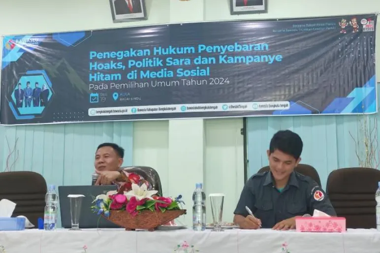 BENGKULU TENGAH.TEROPONG PUBLIK.CO.ID >><< Ketua Dewan Korhormatan Persatuan Wartawan Indonesia (PWI) Provinsi Bengkulu, Zacky Antony sampaikan pesen penting saat mengisi materi Bimtek Penegakan Hukum Penyebaran Hoaks, Politik Sara dan Kampanye Hitam kepada Panwaslu Kecamatan Se-Kabupaten Bengkulu Tengah di Hotel Sindu. Senin (19/12/22) pagi.