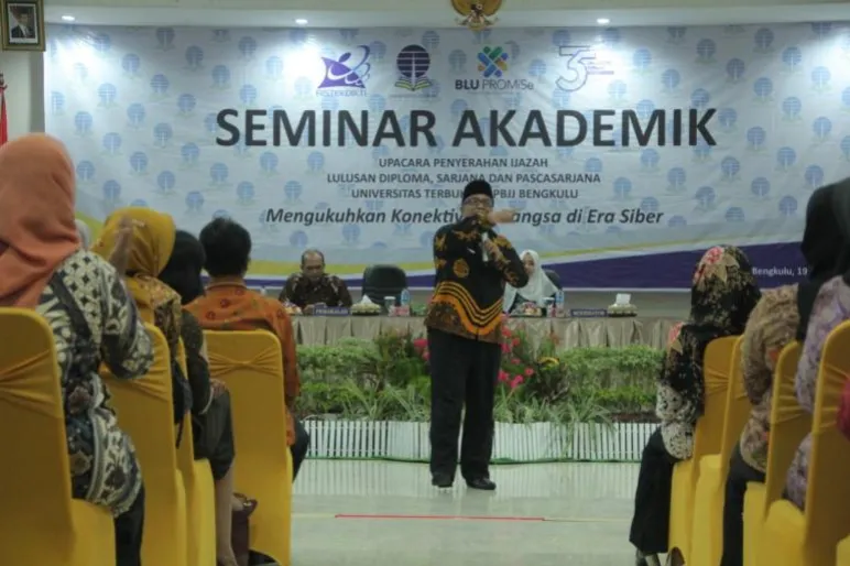 Seminar Akademik dengan tema" Memgukuhkan Konekvitas Bangsa di era Siber" ini menghadirkan dua orang narasumber berkualitas yaitu, Kadis Kominfotik Provinsi Bengkulu Jaduliwan, SE, MM serta Poef. Agus Joko Purwanto, Msi yang saat ini menjabat Kepala Unit Pengembangan Profesi di UPBJJ-UT Pusat.