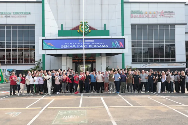 TEROPONGPUBLIK.CO.ID <<<>>>> Kejaksaan Tinggi (Kejati) Bengkulu kembali menggelar kegiatan senam Jumat pagi yang diikuti seluruh jajaran pegawai, Jumat (11/10). Kegiatan yang berlangsung di halaman kantor Kejati Bengkulu itu berlangsung penuh semangat dan keceriaan, menandai komitmen lembaga tersebut dalam menjaga kebugaran jasmani sekaligus mempererat kekompakan di lingkungan kerja.