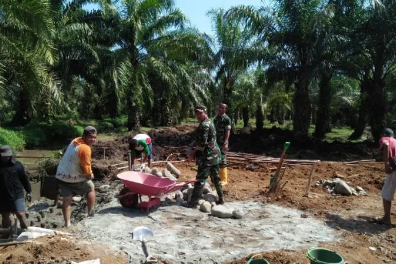 BENGKULU. TEROPONGPUBLIK.COM - Dalam rangka membantu mempermudah aktivitas warga, Satuan Tugas Tentara Manunggal Membangun Desa (TMMD) ke-105 Kodim 0407 Kota Bengkulu melaksanakan pembuatan satu unit jembatan di Kelurahan Padang Serai dan kelurahan Sumber jaya Kecamatan Kampung Melayu kota Bengkulu.