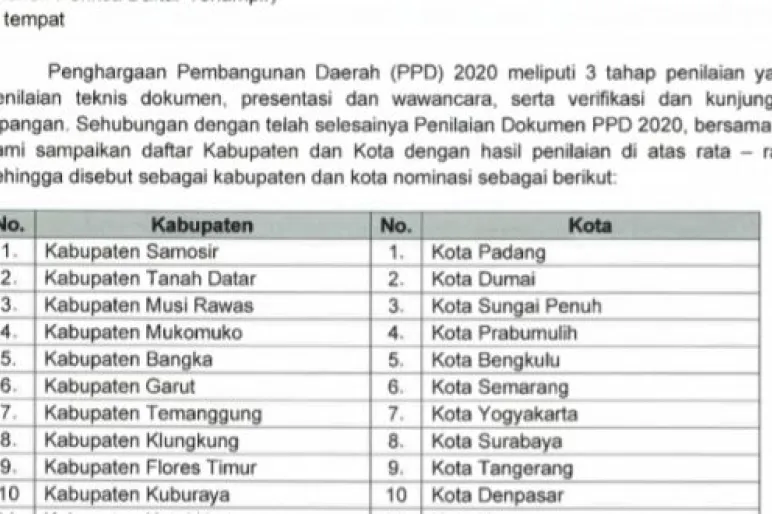 “Berdasarkan hasil penilaian teknis dokumen PPD 2020 Pemerintah Kota Bengkulu ditetapkan sebagai salah satu Kota nominasi beserta dengan belasan Kota lainnya di Indonesia. Insyaallah, kita bisa masuk di 3 besar,” pungkasnya.