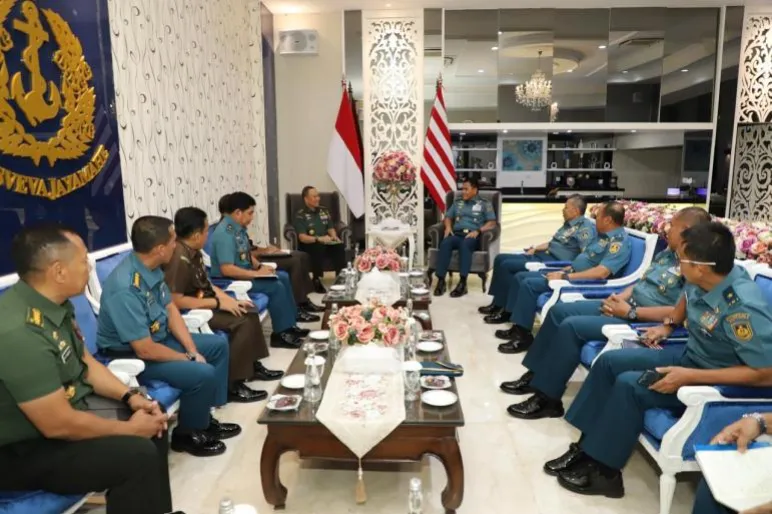 TEROPONGPUBLIK.CO.ID <<<>>> Kepala Staf TNI Angkatan Laut (KSAL) Laksamana TNI Muhammad Ali menerima kunjungan Jaksa Agung Muda Pidana Militer (JAM-Pidmil) Mayjen TNI Dr. W. Indrajit. Pertemuan ini bertujuan untuk mempererat hubungan kerja sama dan pemanfaatan sumber daya dalam penegakan hukum.