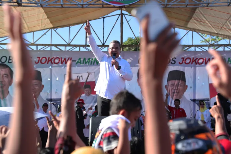 MUKOMUKO.TEROPONG PUBLIK.COM - - Puluhan ribu orang menghadiri kampanye terbuka calon Presiden Joko Widodo dan calon Wakil Presiden Ma'ruf Amin yang dilakukan oleh Juru Kampanye Nasional (Jurkamnas) Tim Kemenangan Nasional (TKN) Eko P. Sandjojo dilapangan medan jaya ipuh, Kabupaten Mukomuko, Bengkulu pada Minggu (7/4).