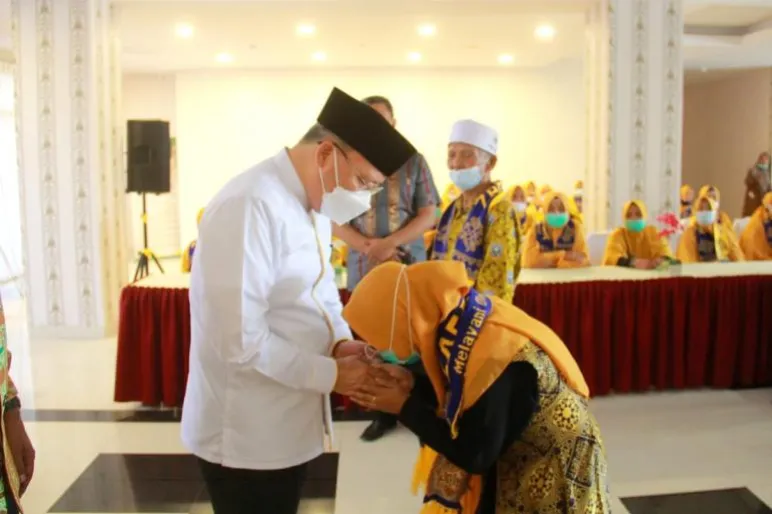BENGKULU.TEROPONGPUBLIK.CO.ID >><<<Lepas 65 Jamaah Umroh asal Kabupaten Bengkulu Utara, Gubernur Bengkulu Rohidin Mersyah pesankan agar para jamaah tetap mengutamakan istirahat yang cukup selama melakukan Ibadah Umroh. Selain masih adanya pandemi COVID-19, perbedaan cuaca antara Indonesia dan Arab Saudi juga akan mempengaruhi kebugaran para jamaah.