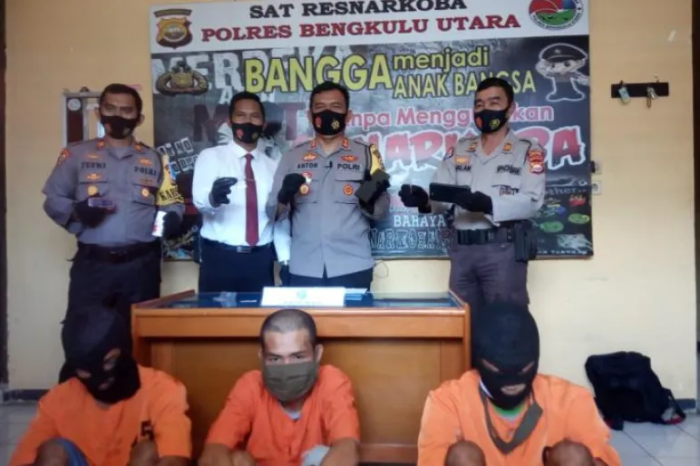Data yang berhasil dihimpun, ketiga tersangka yaitu YS (32) yang merupakan warga Kecamatan Putri Hijau, ND (22) warga Kecamatan Padang Jaya dan ES (27) warga Kecamatan Ketahun. YS berhasil diamankan pada 7 Agustus 2020 di Kecamatan Putri Hijau, beserta barang bukti narkotika jenis sabu sebanyak 5 paket.