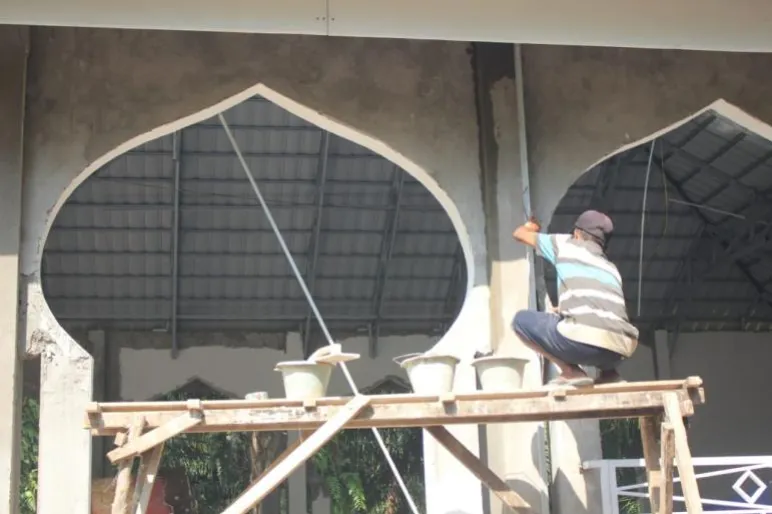 PEMBANGUNAN MASJID OLEH SATGAS TMMD KE-105 KODIM 0407 BENGKULU MENUJU FINISHING