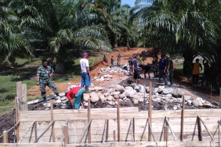Selain pengerjaan plat Duiker,Satgas TMMD bersama Polisi, masyarakat juga akan segera merampungkan Jembatan Teluk Keramat.(AMENG-AMBO)