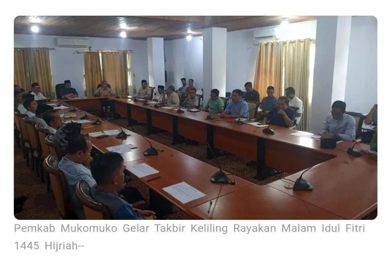 Sekretaris Daerah Kabupaten Mukomuko, Dr. Abdiyanto, SH., M. Si, mengungkapkan hasil rapat yang dihadiri oleh pihak Pemerintah Daerah, Forum Koordinasi Pimpinan Daerah, serta Kementerian Agama Kabupaten Mukomuko. Mereka sepakat untuk menyelenggarakan takbir keliling pada malam Idul Fitri 1445 Hijriah.