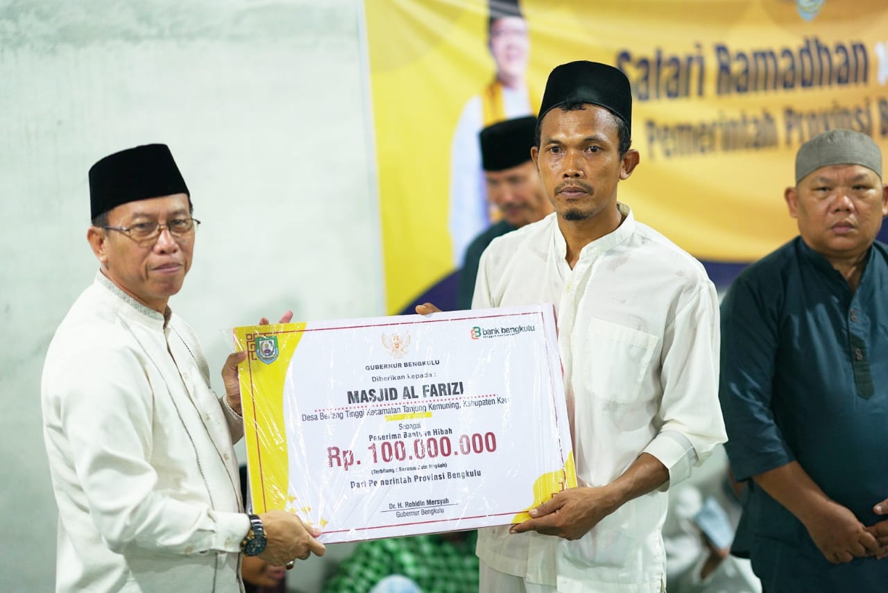 TEROPONGPUBLIK.CO.ID >><< Pemerintah Provinsi Bengkulu memberikan dukungan finansial kepada 10 masjid di Kabupaten Kaur dalam rangka safari Ramadhan perdana tahun ini. Asisten III Setda Provinsi Bengkulu, Nandar Munadi, yang mewakili Gubernur Rohidin, menyampaikan bahwa kunjungan tersebut tidak hanya merupakan upaya silaturahmi, tetapi juga penyaluran bantuan untuk pembangunan masjid.