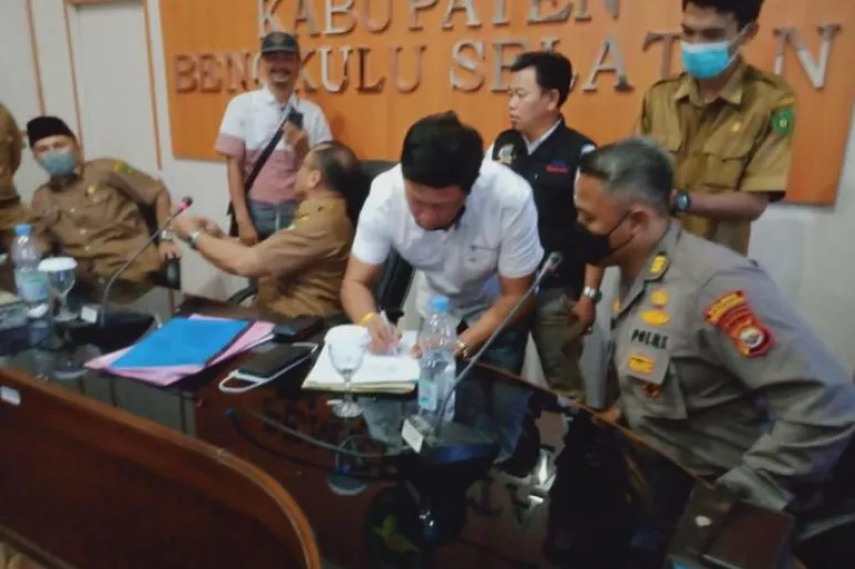 Setelah sampai dikantor bupati tersebut seluruh insan pers berorasi untuk menyampaikan asprirasinya kepada bapak Bupati,Kadis Kominfo dan Kabag Hukum Pemda kabupaten Bengkulu,hal ini cukup A lot, karna untuk menerobos Pintu Gerbang Pemda Kabupaten Bengkulu Selatan Insan pers dihadang oleh pihak keamanan kepolisian ,SATPOL PP dan sebagainya. Serta pintu gerbang ditutup rapat akan tetapi setelah mendengarkan orasi dari Insan pers secara Profesional maka pihak Pemda mempersilahkan Dari perwakilan beberapa Media mewakili seluruh insan pers dipersilahkan masuk dan disambut oleh penegak Hukum Kominfo Dan Kakan SATPOL PP untuk mengadakan Rapat Diruang rapat Pemda Kabupaten Bengkulu Selatan.