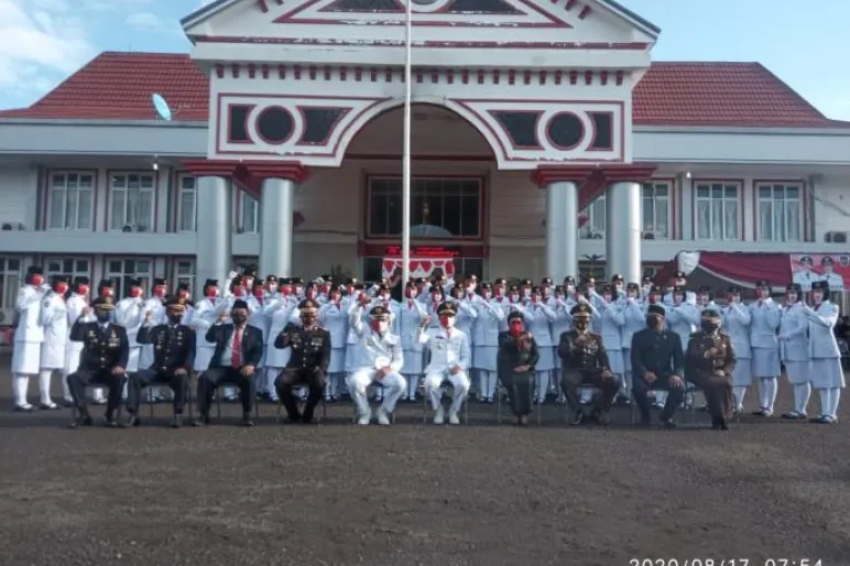 BENGKULU UTARA.TEROPONGPUBLIK.CO.ID>><< Pelaksanaan Upacara Hari Ulang Tahun (HUT) Republik Indonesia (RI) ke-75 di Kabupaten Bengkulu Utara di lakukan secara sederhana dipimpin langsung Bupati Kabupaten Bengkulu Utara,H.Ir.Mian dilakukan pukul 07.30 WIB,Senin(17/08/2020).