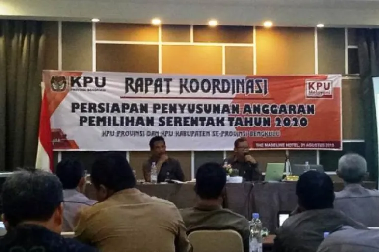 Komisi Pemilihan Umum (KPU) Provinsi Bengkulu menggelar rapat koordinasi persiapan penyusunan anggaran pemilihan serentak tahun 2020, bertempat di The Madeline Hotel Bengkulu.
