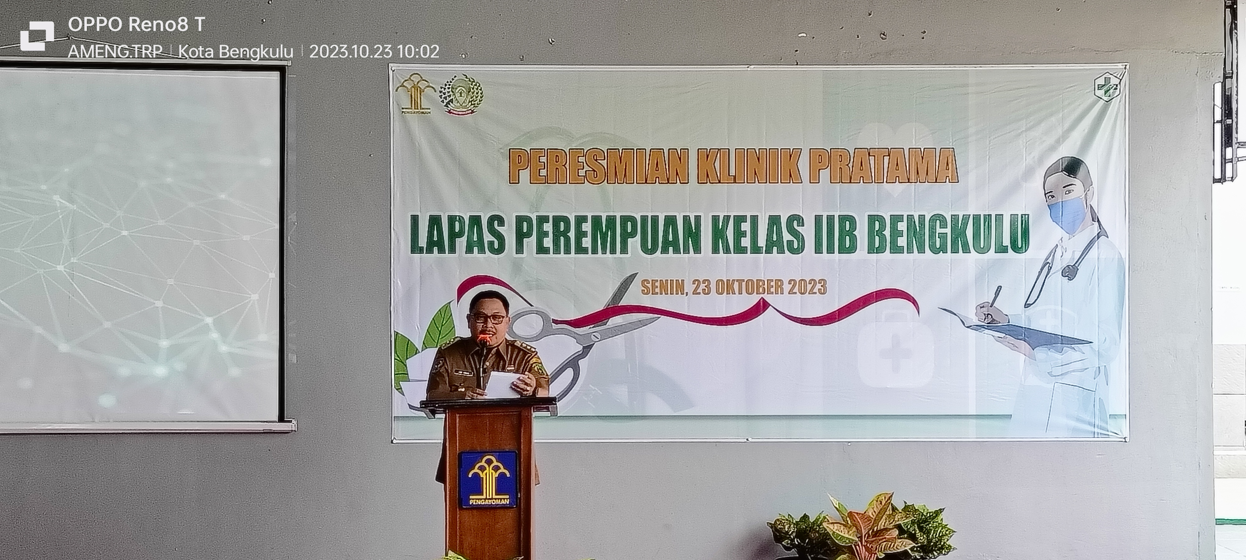 TEROPONGPUBLIK.CO.ID - PJ Walikota Kota Bengkulu, Arif Gunadi, hari ini secara resmi meresmikan Klinik Pratama di Lapas Perempuan Kelas II Bengkulu. Dalam sambutannya, PJ Walikota Arif Gunadi menyampaikan apresiasi kepada Kalapas Perempuan atas upaya menjaga kesehatan para Warga Binaan Perempuan (WBP) yang kini berjumlah sekitar 88 orang.Senin (23/10)