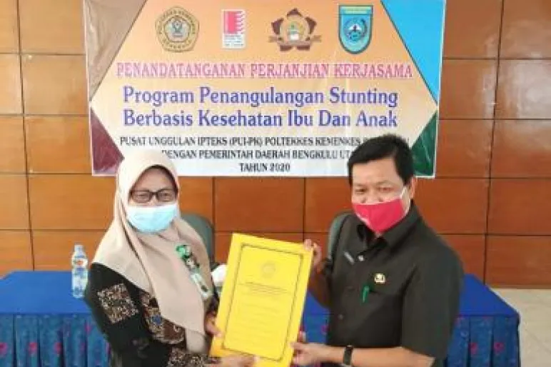 BENGKULU UTARA.TEROPONGPUBLIK.CO.ID>><< Pjs Bupati Bengkulu Utara (BU) Dr Iskandar Zo SH MSi menandatangani perjanjian kerjasama pada kegiatan program penanggulangan stunting berbasis kesehatan ibu dan anak, di Gedung Poltekkes Kemenkes, Selasa (3/11/2020).