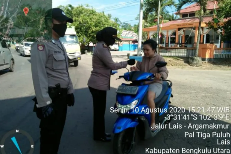 Dalam membantu melakukan sinergitas memberikan sosialisasi pada masyarakat agar tetap menjaga kesehatan dalam peraktipitas,untuk mencegah penularan COVID-19 pada masyarakat polsek Lais Iptu Yeni Puspita bebersama Tim melakukan Razia simpatik masker guna mengingat para pengemudi kendaraan tetap pada aturan protokol kesehatan dan selalu mengunakan masker.