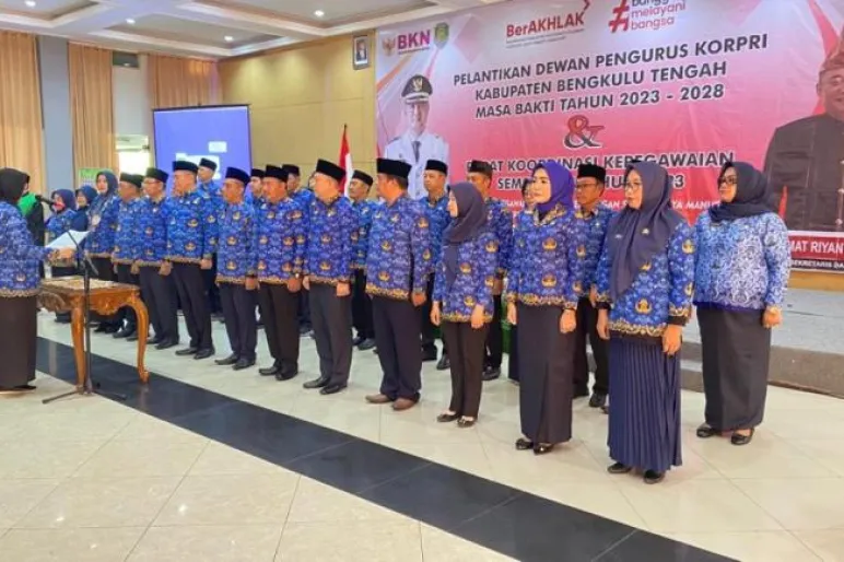 Sekretaris Daerah Bengkulu Tengah, Drs. Rachmat Riyanto, ST, MAP, terpilih sebagai Ketua Pengurus Korps Pegawai Republik Indonesia (KORPRI) untuk masa bakti 2023-2028. Pelantikan dilakukan oleh Ketua Dewan Pengurus KORPRI Provinsi Bengkulu, Hj. Yuliswani, SE, MM.
