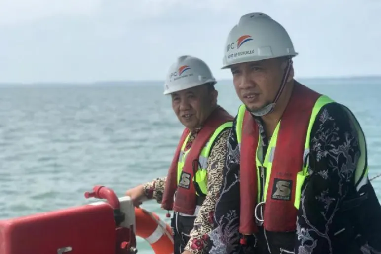 PROVINSI.BENGKULU.TEROPONGPUBLIK.COM >><<Sekretaris Daerah Provinsi Bengkulu Nopian Andusti sambangi Pelabuhan Pulai Baai. Kehadiran Sekda yang didampingi GM Pelindo, KSOP dan Kadishub provinsi Begkulu dalam meninjau langsung aktivitas kapal penggeruk alur yang beroprasi di pelabuhan tersebut.