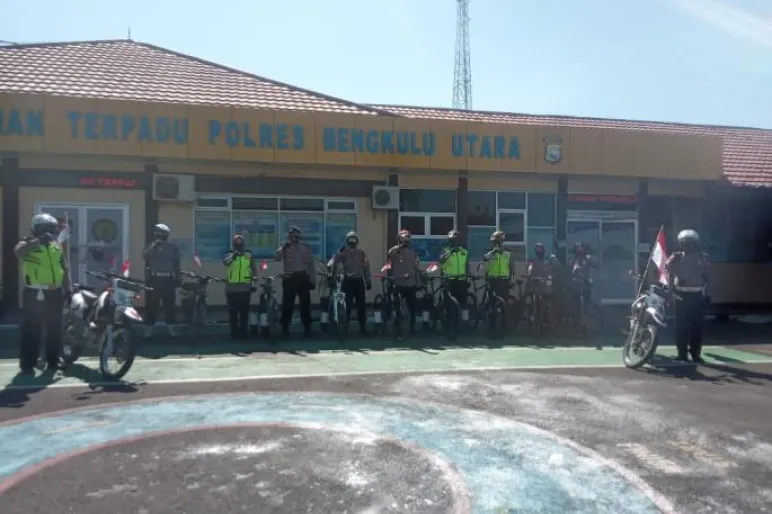 BENGKULUUTARA.TEROPONGPUBLIK.CO.ID>><<Menyambut Dirgahayu Republik Indonesia Ke 75 yang jatuh pada tanggal 17 Agusus 2020 mendatangPolres Kabupaten Bengkulu Utara melaksanakan kegiatan bakti sosial berupa pembangian sembako dan langsung berkalborasi dengan patroli bersepeda,dan Pembagian sembako tersebut akan di bagikan di tpa,yang jumlahnya sesuai dengan masyarakat yang ada di Tpa.Rabu 12/08/2020.