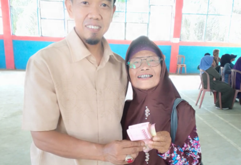 Mbok Sukarsi Penerima BLT DD Warga Desa Arga Mulya Menahan Tetes Air Mata Ketika mengatakan Rasa Syukurnya