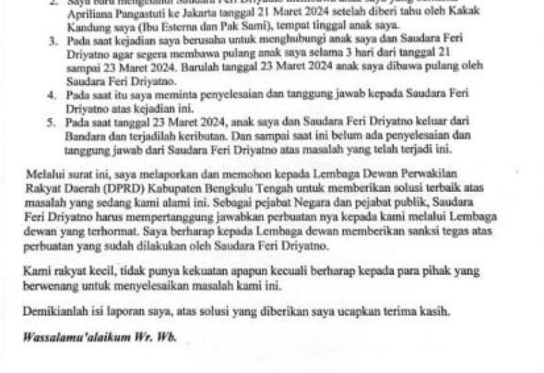 Pejabat Bengkulu Tengah Diduga Bawa Mahasiswi Tanpa Izin Orang Tua