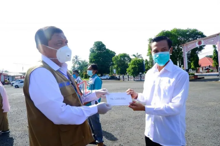 BENGKULUUTARA.TEROPONGPUBLIK.OM>><< Bupati Bengkulu Utara Ir.H.Mian didampingi Wakil Bupati Bengkulu Utara Arie Septia Adinata,SE,M.AP Berikan Insentif kepada 497 tenaga medis Rumah Sakit Umum dan Puskesmas atas kinerja dalam penanganan wabah Covid-19, di Halaman Pemda BU, Selasa (19/5/2020).