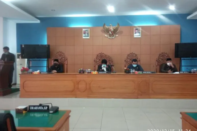 BENGKULUUTARA.TEROPONGPUBLIK.CO.ID>><<Dewan Perwakilan Rakyat Daerah (DPRD) Kabupaten Bengkulu Utara melaksankan Rapat Paripurna mengenai Rancangan Peraturan Daerah (Raperda) inisiatif DPRD BU Tentang Jaminan Kesehatan Daerah (Jamkesda). di gedung Paripurna DPRD BU, Arga Makmur, Selasa (15/12/2020).