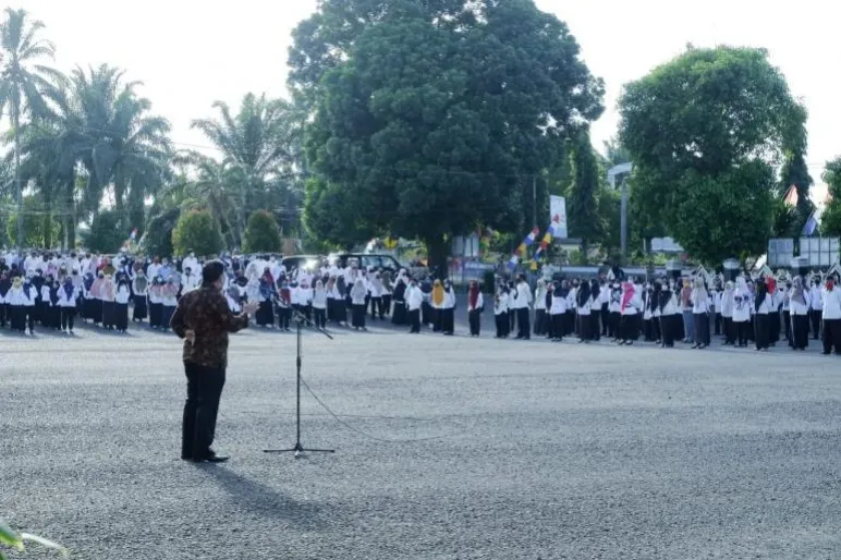 Disampaikannya lebih lanjut, Apel Gabungan ini bertujuan agar semua mengetahui dan bersifat Transparan sehingga semua dapat mengetahui besaran Bantuan yang akan di Berikan Kepada Tenaga Non-PNS yang Memiliki Gaji di Bawah 5 Juta.