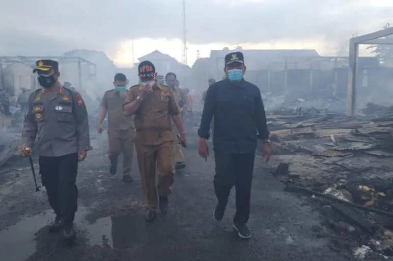 BENGKULUUTARA.TEROPONGPUBLIK.CO.ID>><< Bupati Bengkulu Utara, Ir. H. Mian melakukan tinjauan langsung ke lokasi kebakaran di Pasar Purwodadi kecamatan Kota Arga Makmur, Senin (5/4/2021) pagi.