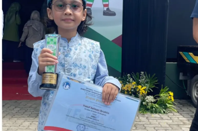 TEROPONGPUBLIK.CO.ID <<<<>>>> Yusuf Salman Ibrahim, seorang murid berbakat dari TK Islam Al-Azhar 50 Bengkulu, telah menorehkan prestasi gemilang dengan meraih juara pertama dalam lomba adzan tingkat nasional di Indonesia. Kemenangan gemilang ini diraihnya dalam ajang Festival dan Lomba Kreasi Al Azhar (FELKA) Se-Indonesia, yang diselenggarakan di Semarang pada tanggal 26 hingga 27 April 2024. Fitri Ramadani, S.Pd, guru pembimbing yang mendampingi delegasi dari Al-Azhar Bengkulu, menyampaikan rasa syukur atas pencapaian yang luar biasa ini.