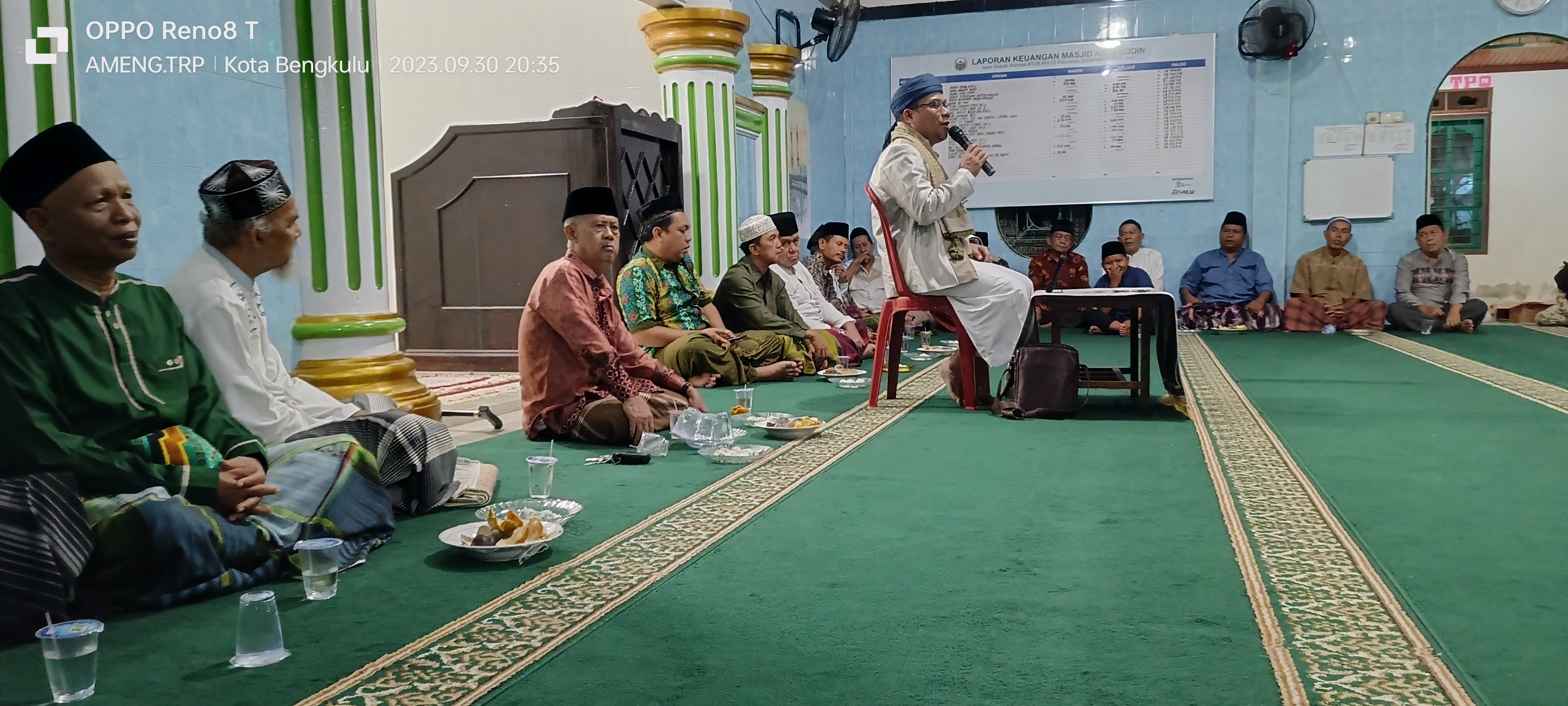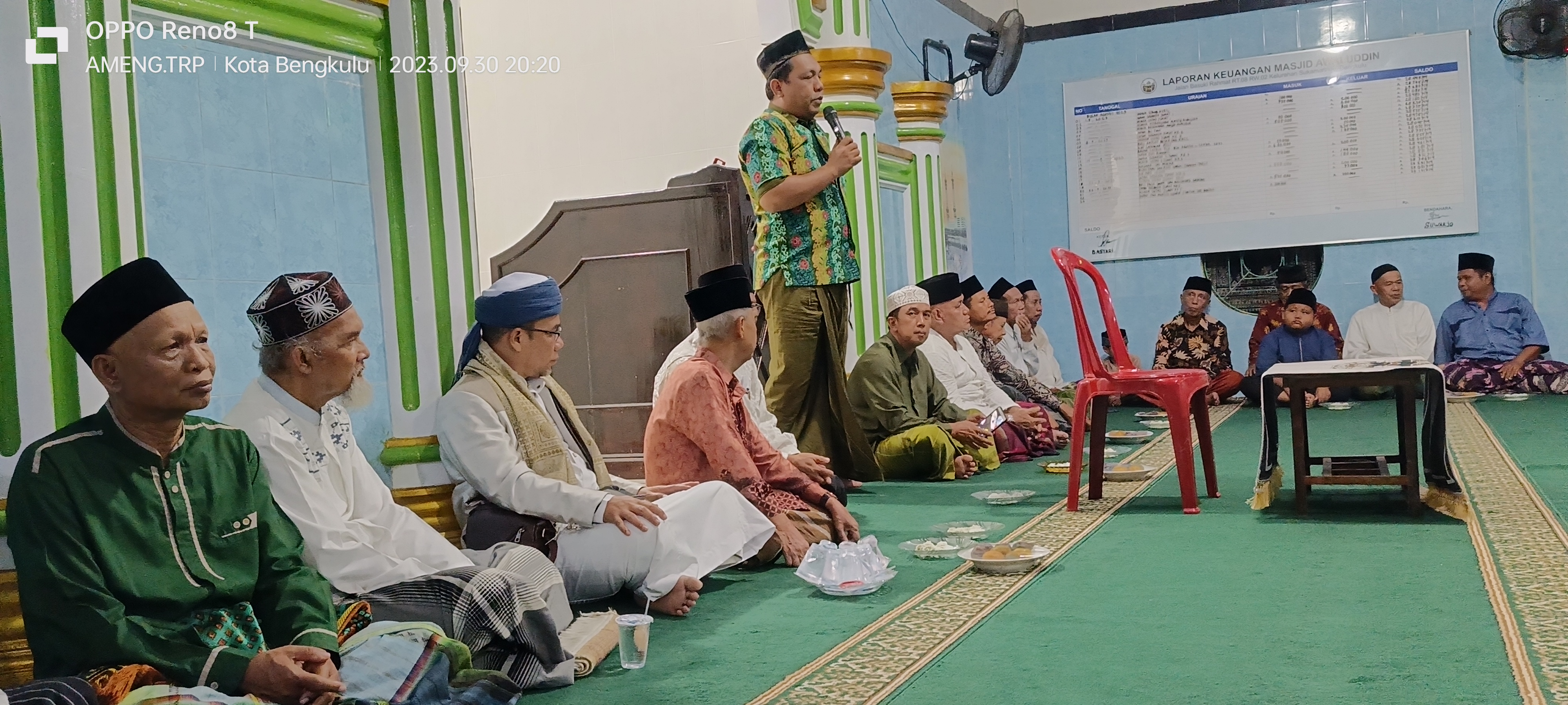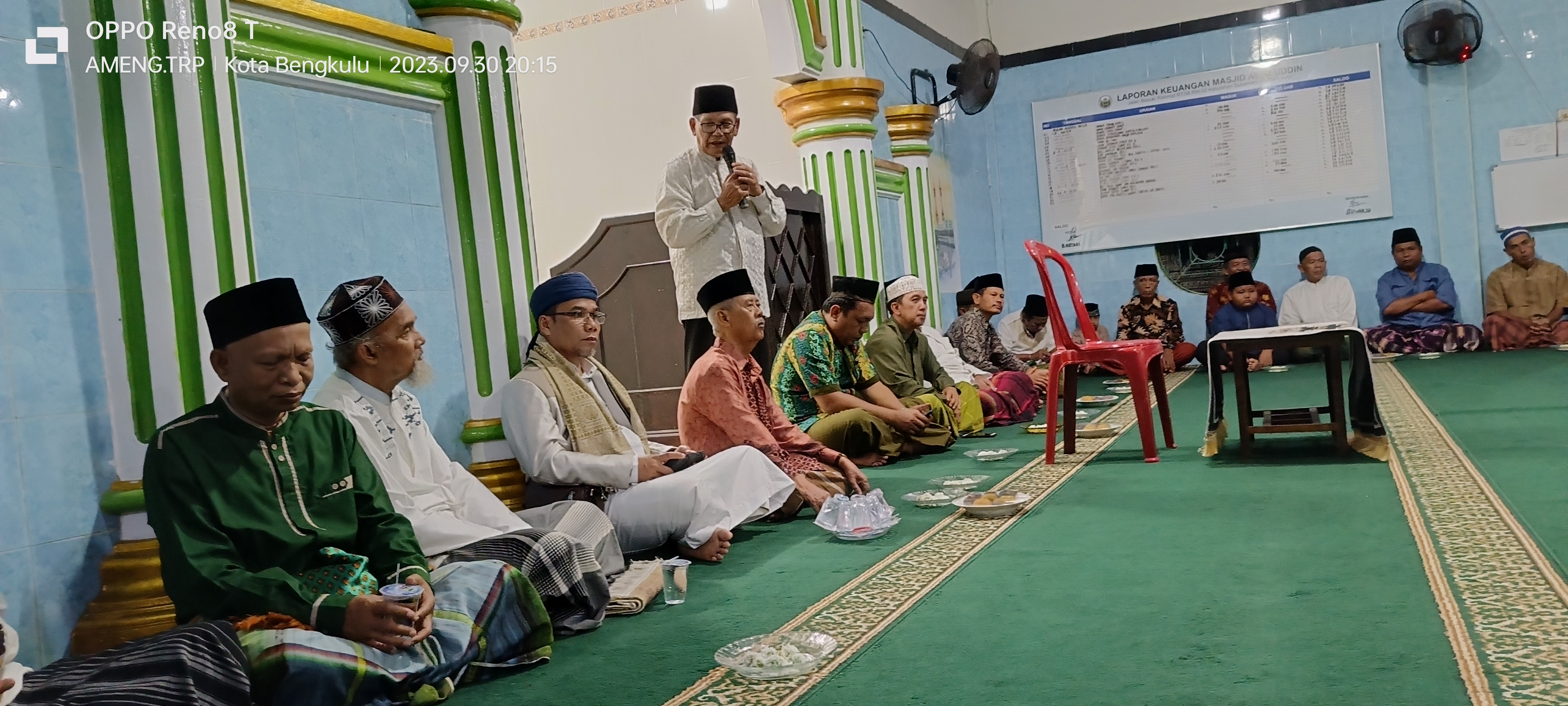 Dalam kata sambutannya, Ketua Masjid Awaludin, H. Bastari Marzuki, menyampaikan rasa syukur dan kebahagiaan atas kehadiran seluruh warga dalam acara bersejarah ini. Ia menekankan pentingnya perayaan Maulid Nabi Muhammad SAW sebagai momentum untuk meningkatkan keimanan dan kecintaan kepada Nabi besar umat Islam.